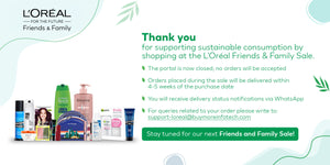 • Discounted prices on surplus stock • 4-12 months shelf life • Products not for resale or commercial purposes • Purchase Limits per Division: Consumer Products - Maximum 10, Professional Products - Maximum 5, Luxury Products - Maximum 5, Dermatological Products - Maximum 5 • All registered users can shop up to a total of ₹25,000 during the sale • Orders will be delivered within 4 - 5 weeks from the order date